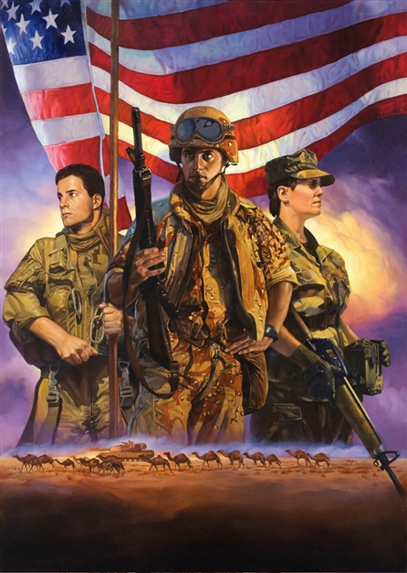 Operation Desert Storm Homecoming Air Force Travels Theme art commissioned by the US Government for the celebration of American troops returning from Operation Desert Storm.